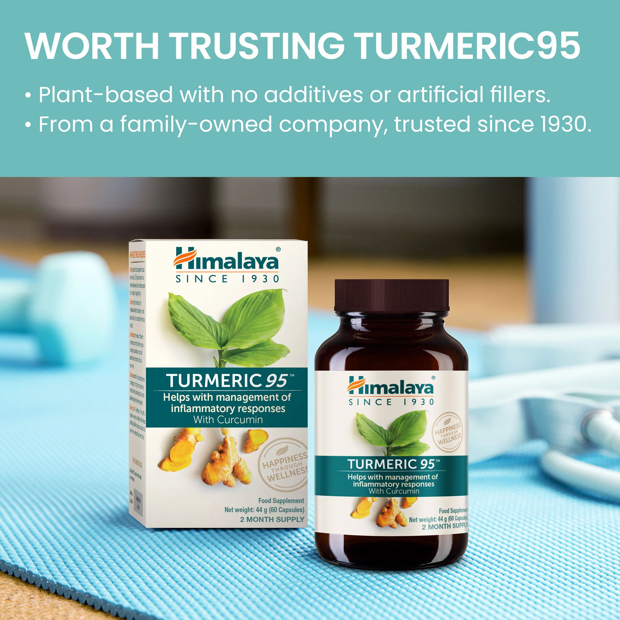 Himalaya Turmeric 95 with Curcumin helps with management of inflammatory responses, with just one vegetarian capsule a day. For those looking for Turmeric supplement without black pepper or added ingredients, or the simple crushed Turmeric, Himalaya Turmeric 95 is a combination of Turmeric rhizome powder and Turmeric rhizome extract with 95% curcuminoids including Curcumin.